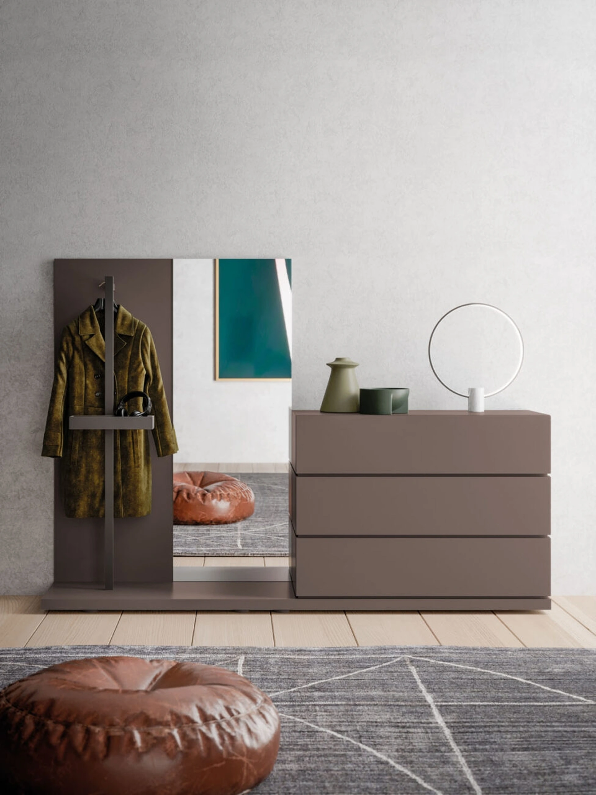 La camera da letto include anche i Comodini: arredi contenitivi utilissimi che lasciano la possibilità di riporre piccole cose e avere a disposizione superfici per appoggiare per vari utilizzi. Comò Compongo con appendiabiti di Orme: contattaci e scopri di più sulle nostre composizioni e arreda la camera come l'avevi sognata. Ottimizza i tuoi spazi scegliendo composizioni di pezzi abbinati o crea voluti accostamenti di stile e cromie per merito del catalogo di mobili e oggetti accessori per la camera da letto che proponiamo, come il modello in laccato opaco mostrato in foto, anche realizzabili su misura.