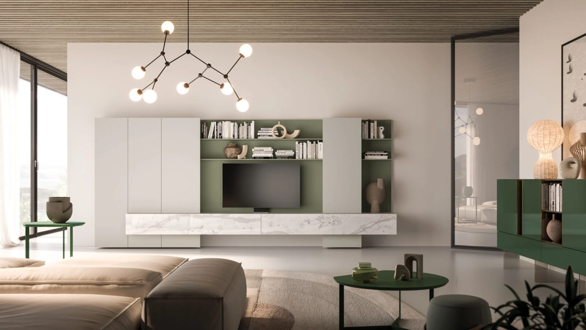 Parete Attrezzata Modulo Day 07 in laccato e vetro serigrafato di Orme
