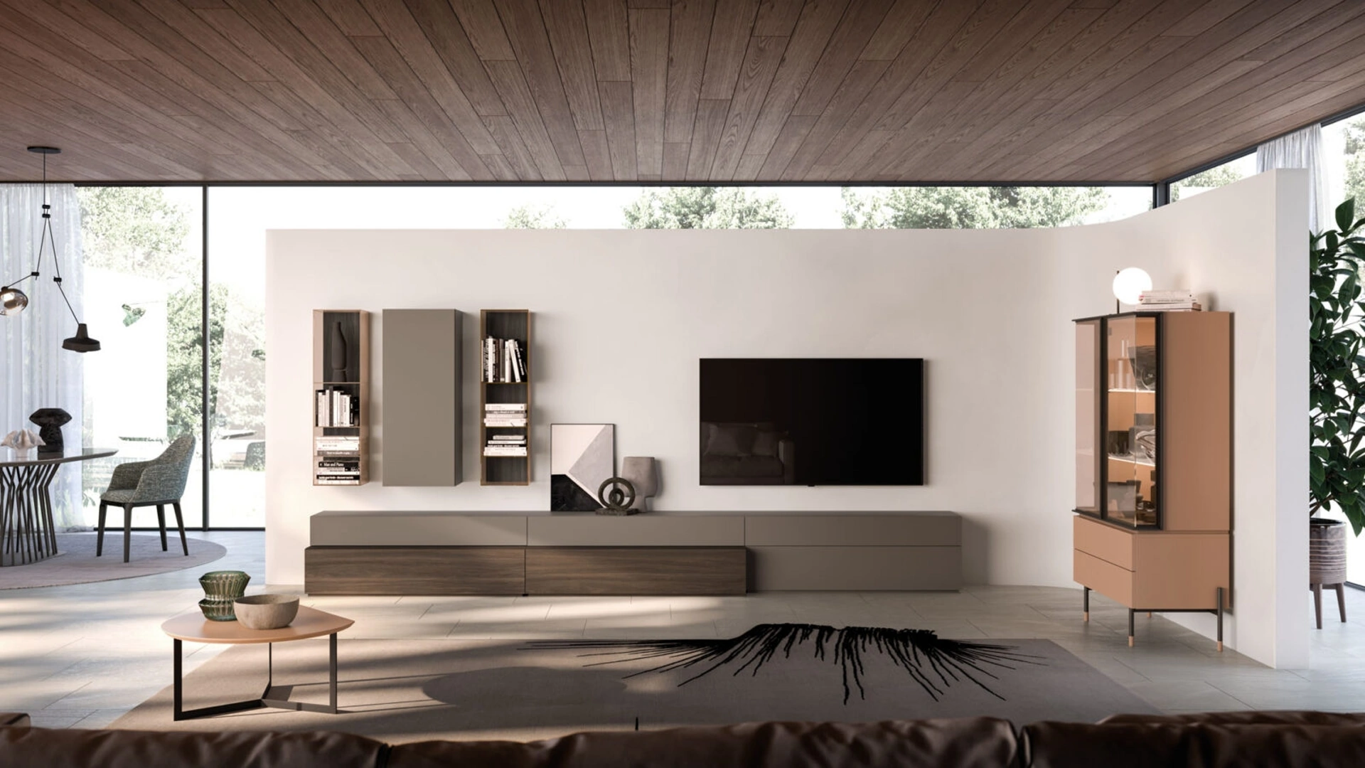 Parete Attrezzata Modulo Day 08 in laccato e materico Noce di Orme